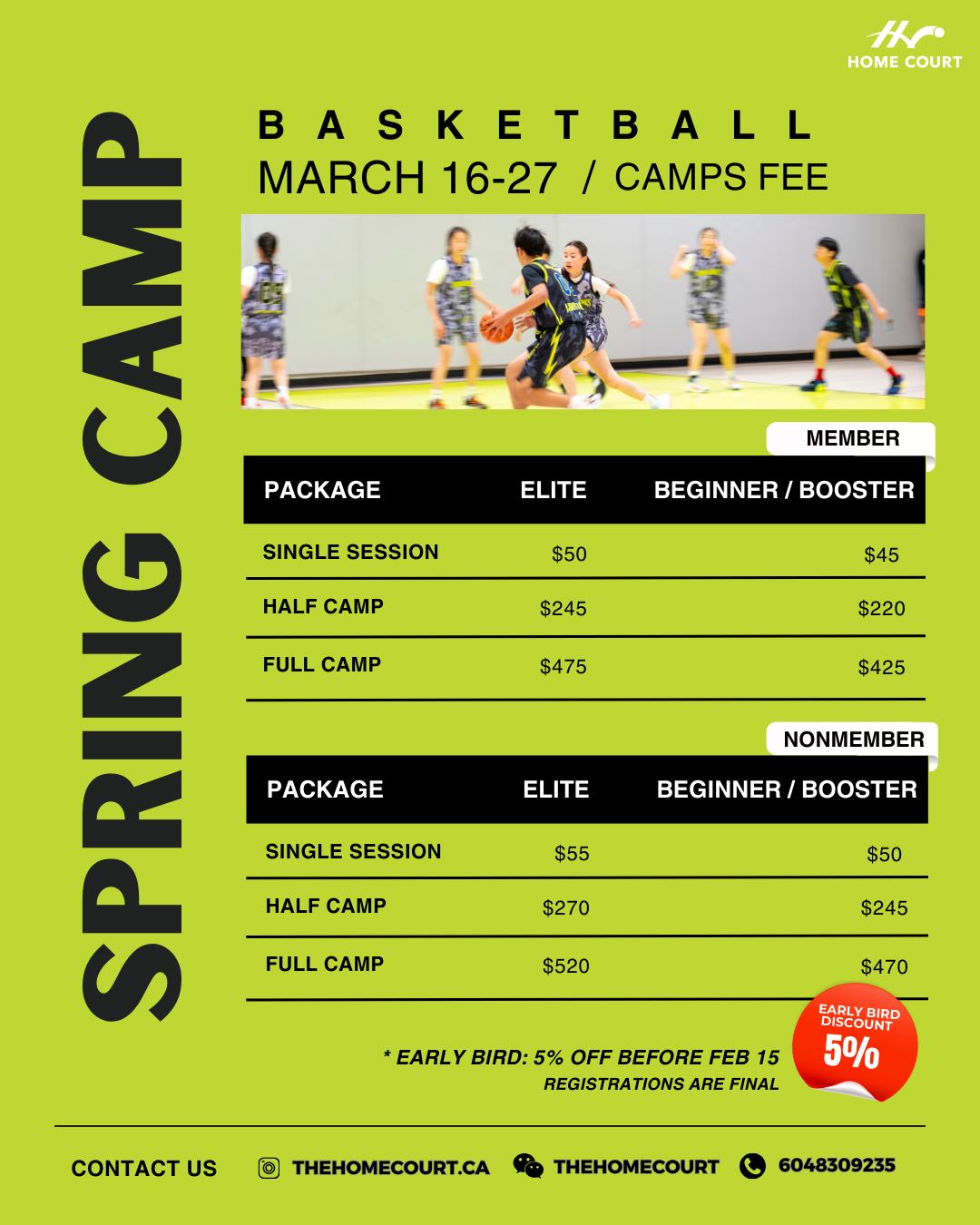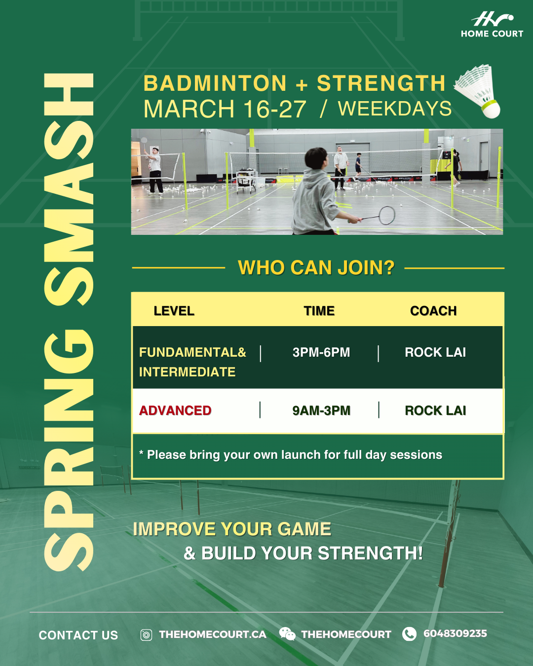 Join us at The Home Court for basketball and badminton training during spring break.
